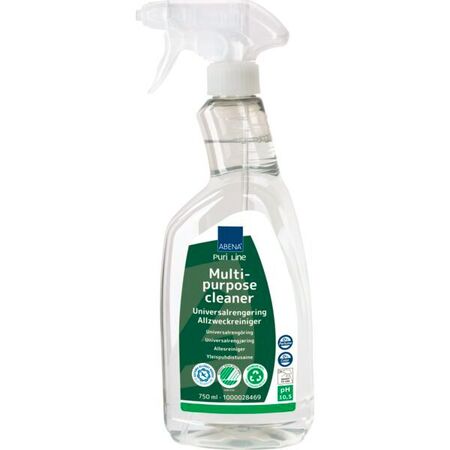 Abenan Puri-Line käyttövalmis yleispuhdistusaine soveltuu kaikille vedenkestäville pinnoille, päivittäiseen puhdistamiseen. Aine suihkutetaan suoraan puhdistettavalle pinnalle tai mikrokuituliinaan, jonka jälkeen pinta pyyhitään.