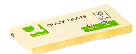 Q-Connectin Quick Notes -viestilaput kiinnittyvät voimakkaasti useimmille pinnoille. Ympäristöystävälliset laput on valmistettu FSC-sertifioidusta puusta. Pussissa on 3 lehtiötä. Minimitilausmäärä on 4 pussia = 12 nidettä = 1 kartonkirasia.