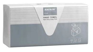 Katrin Plus Non-Stop M Easy Pick on Plus-laatuinen, pehmeä ja imukykyinen käsipyyhe, jonka muovipakkaus toimii näppärästi annostelijana. Dermatologisesti testattu tuote soveltuu lyhyeen kosketukseen elintarvikkeen kanssa. Non-Stop -ketjutaitetut arkit tulevat annostelijasta kätevästi ja hygieenisesti yksi kerrallaan. Paperi on valmistettu PEFC-sertifioidusta kuidusta. Tuottella on sekä EU Ecolabel -ympäristösertifikaatti, pohjoismainen Joutsenmerkki että kotimainen Avainlippu. Pakkauksessa 135 arkkia ja 21-nippua=2835-arkkia.